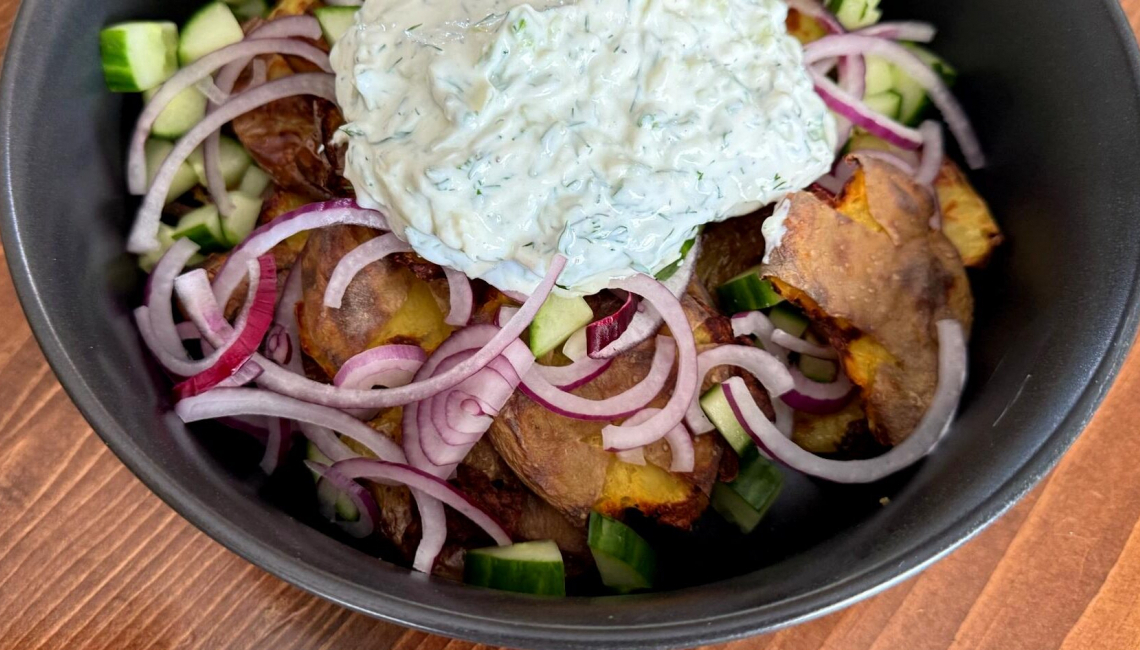 - 1 recette de nos pommes de terre écrasées à l’ail (voir recette: https://www.jaimefruitsetlegumes.ca/fr/recettes/pommes-de-terre-ecrasees-a-lail/)